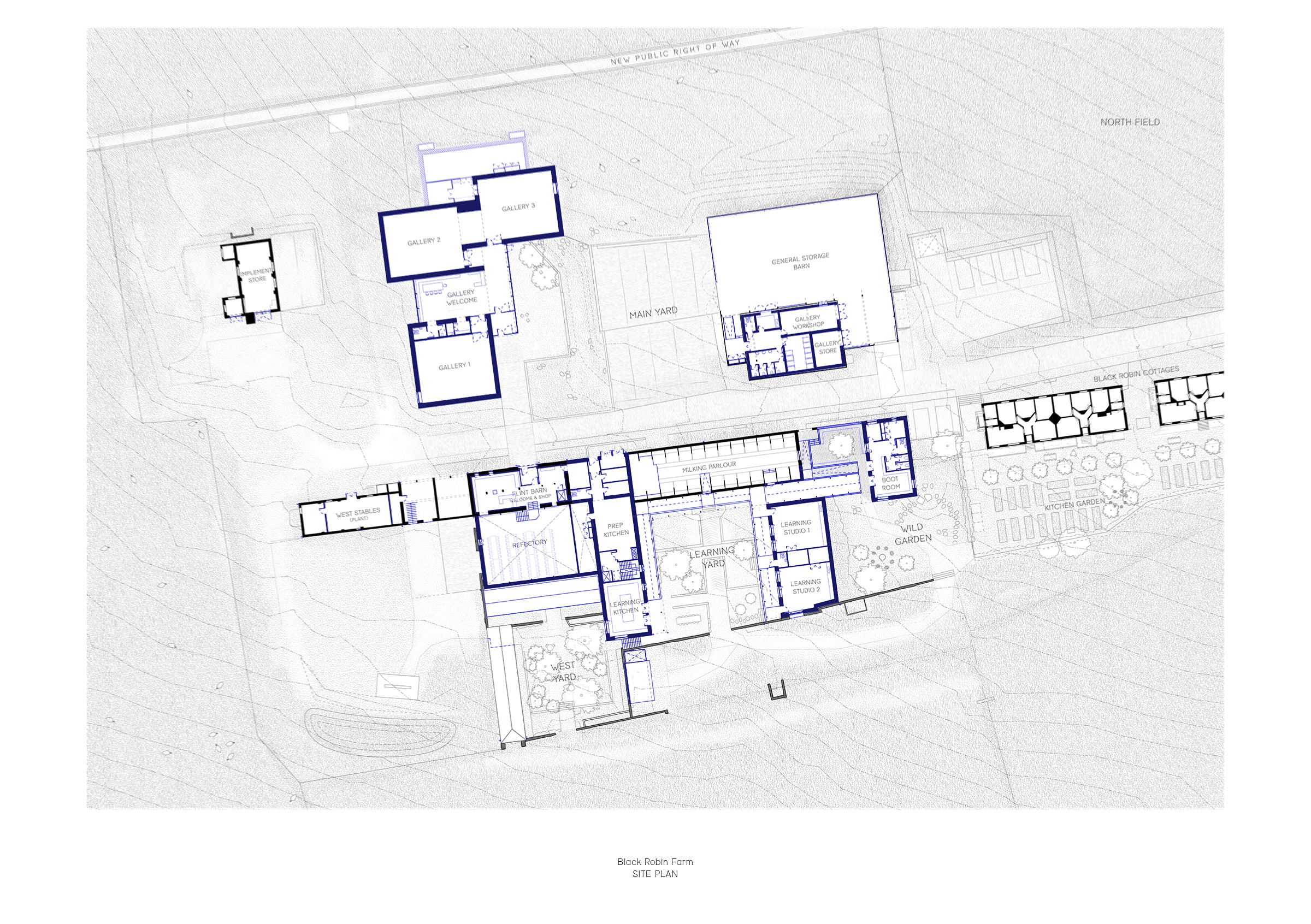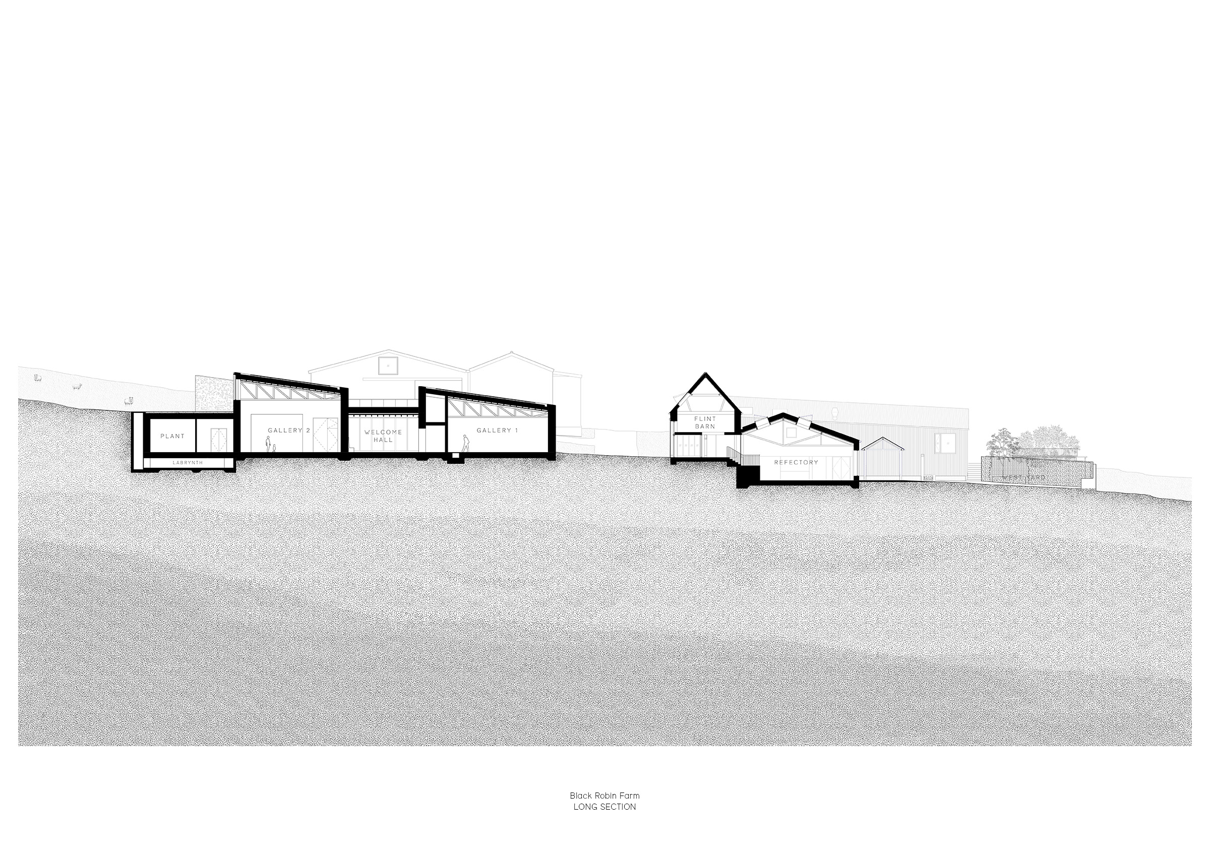 Located two miles west of Eastbourne, Black Robin Farm will act as a cultural gateway to the South Downs, linking town, downland, and coast. The project proposes a centre for education and culture that mediates between Eastbourne’s town centre and the National Park, establishing a civic threshold that encourages engagement with the landscape. The centre will be operated by the award-winning Towner Eastbourne.