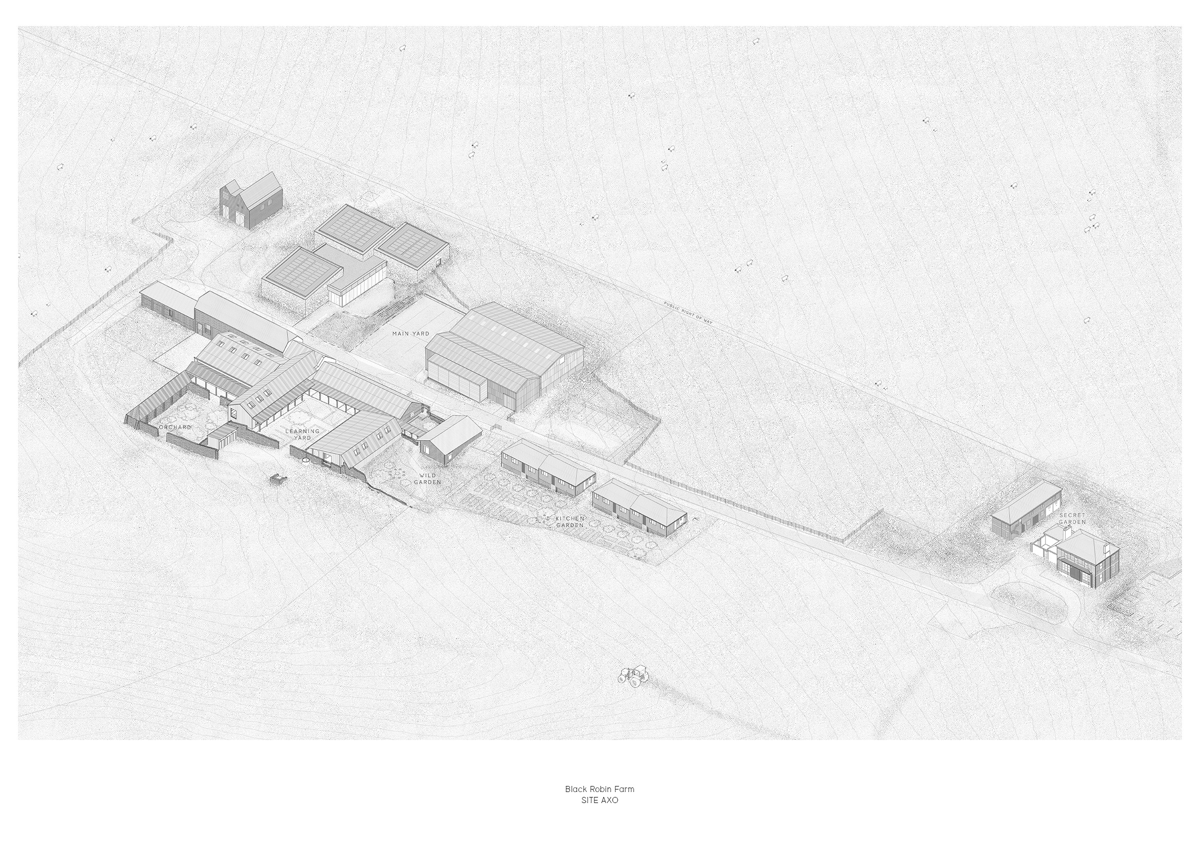 New buildings replicate the north-south wings around an education yard and productive orchard, balancing accessibility with vernacular principles. Through careful study of the existing architecture, the design preserves and celebrates the sensory qualities of the site. A considered palette of scales, materials, and agricultural references fosters a rich connection to the landscape, creating spaces for learning, making, and community engagement within the South Downs.